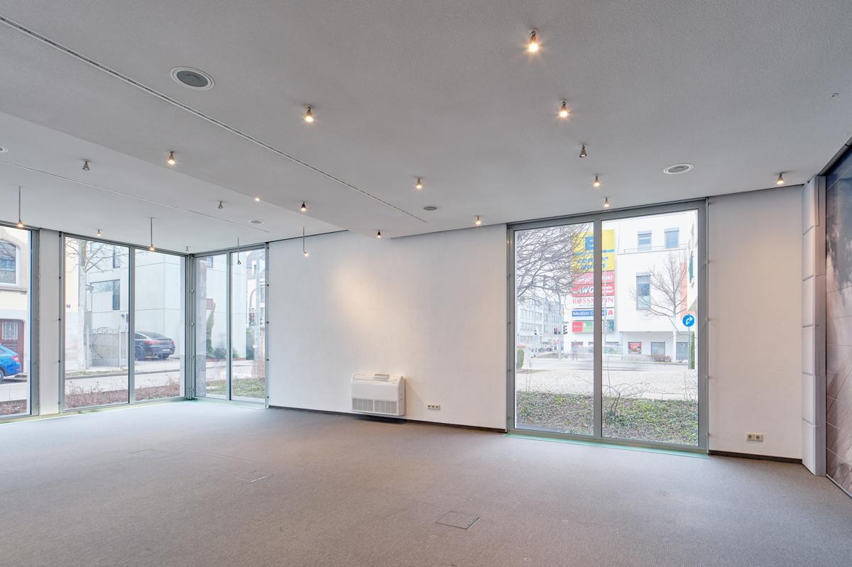 Gewerberäume in einem besonders eleganten und modernen Design. Die bodentiefen Fenster auf allen Seiten garantieren eine helle Arbeitsatmosphäre egal bei welcher Nutzung. Das Raumklima ist bequem über die Fußbodenheizung und/oder die Be- und Entlüftungsanlage steuerbar. Besondere Raumhöhen und die Gestaltung der 10 Räume mit ihren unterschiedlichen Größen lassen nur wenige Wünsche offen.Lagebeschreibung: